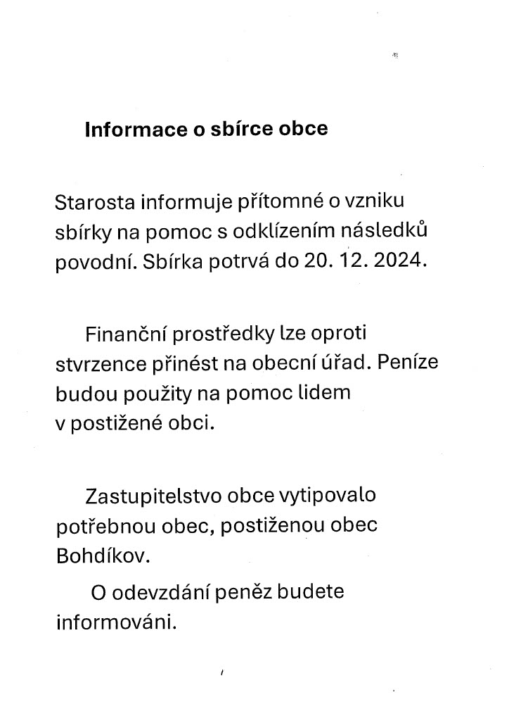 Sbírka na pomoc s odklízením následků povodní obce Bohdíkov