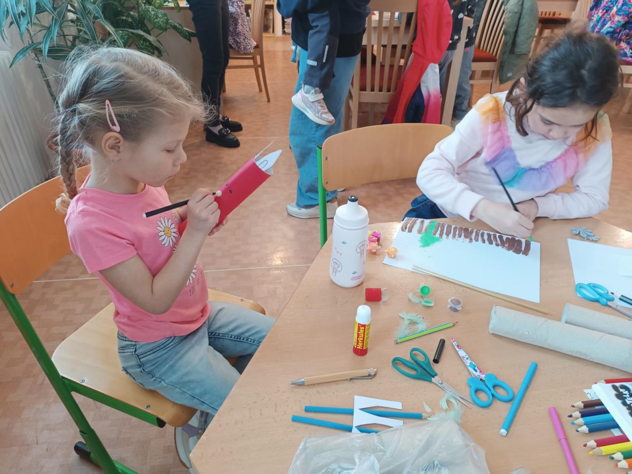 Děti, jenž navštěvují místní knihovnu, si dne 11.4.2025 užily velikonoční tvoření.